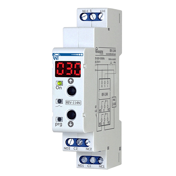 Przekaźnik czasowy REV-114N to mikroprocesorowe urządzenie przeznaczone do sterowania obciążeniem w określonych przez użytkownika przedziałach czasowych.