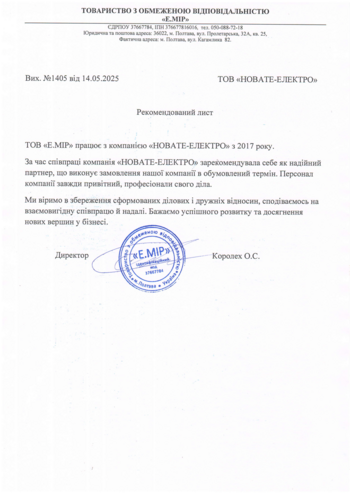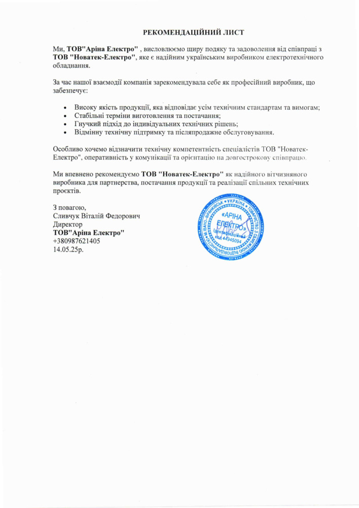 Відгуки | Новатек-Електро - Виробництво електротехнічної продукції